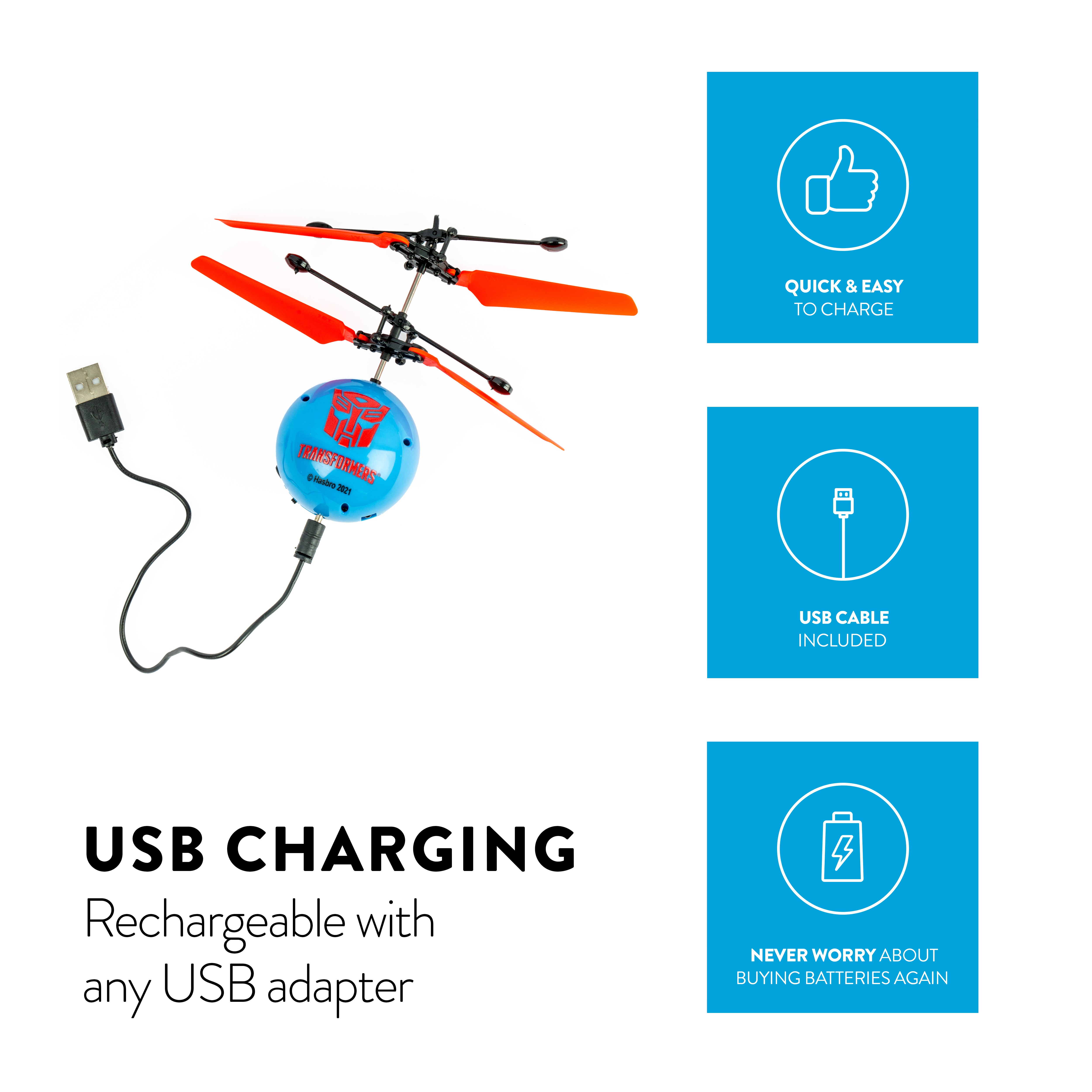 Just turn it on, launch, and use your hand to control it in mid-air with advanced infrared sensor technology. When you're ready to land, grab it or use any IR remote control for a safe descent. Ideal for improving hand-eye coordination, this heli ball is perfect for Transformers and helicopter enthusiasts alike.