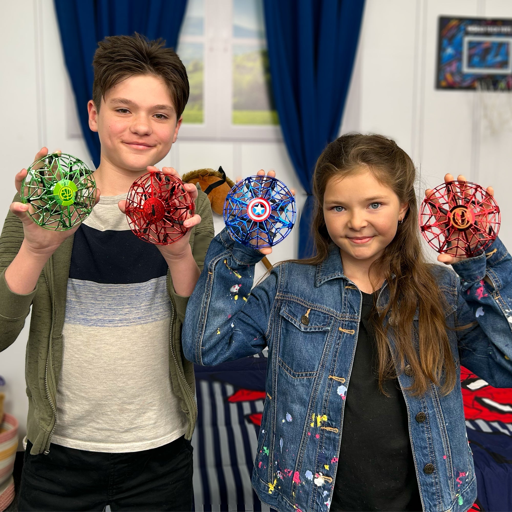 Take to the skies with the Captain AmericaMarvel Intelli UFO Motion Sensing Helicopter! Featuring advanced infrared hover sensor technology, this incredible UFO helicopter detects nearby objects and moves away from them automatically, giving you smooth, hands-free control. Simply turn it on, launch, and use your hand to guide it in the air—no remote needed! Built with durable yet lightweight material, it's designed to withstand rough landings, so you can enjoy hours of flying fun without worry.