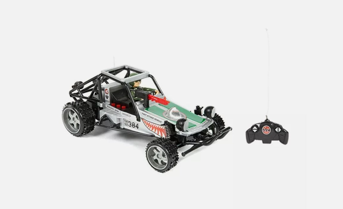 Take over the wasteland with this battle-ready Top Speed Desert Racer Shark Camo 1:16 Electric RTR RC Buggy! This awesome buggy features a tough full suspension that let's it go places most other cars won't! The off-road tires and protective front bumper ensure you'll keep your ride in great condition no matter the terrain. The full function remote keeps you engaged in the race, so what are you waiting for? Get the Top Speed Desert Racer Shark Camo 1:16 Electric RTR RC Buggy today! (Colors may vary).